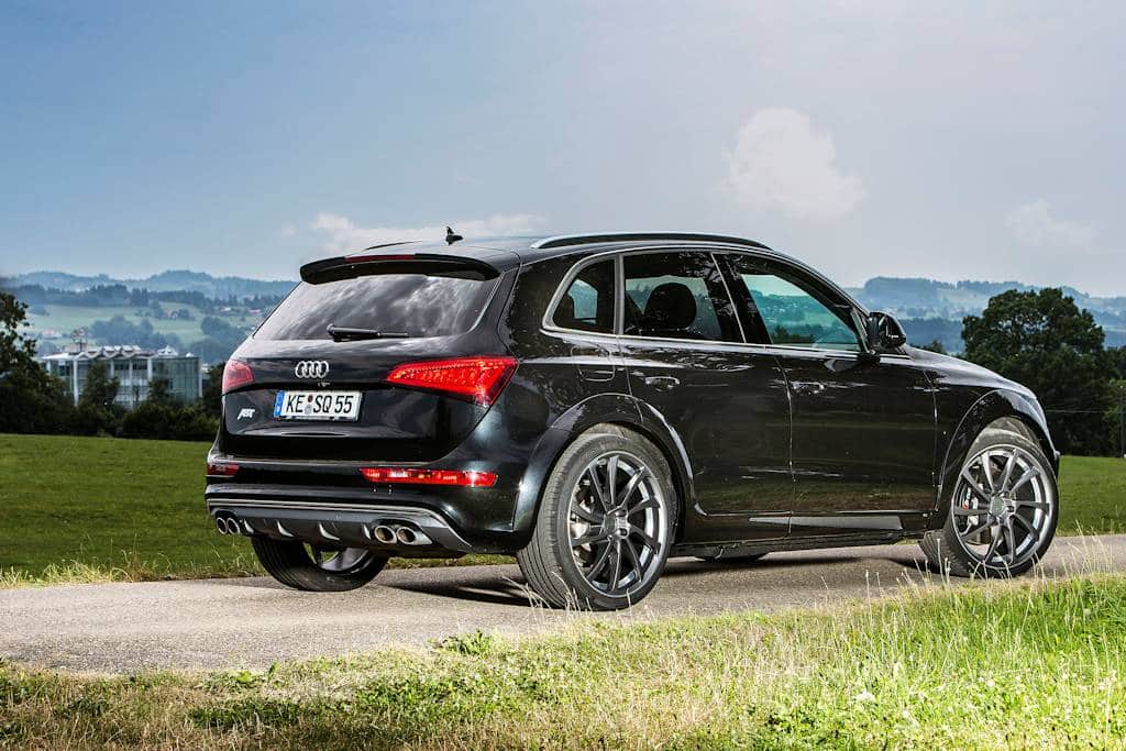 In Zahlen liest sich das so: Aus den serienmäßigen 313 PS (230 kW) werden bei ABT Sportsline 360 PS bzw. 265 kW. Das Drehmoment steigt von 650 auf immense 700 Nm. Wer will, kann eine extravagante und selbstbewusste Breitbau-Variante wählen, damit ist der getunte Audi SQ5