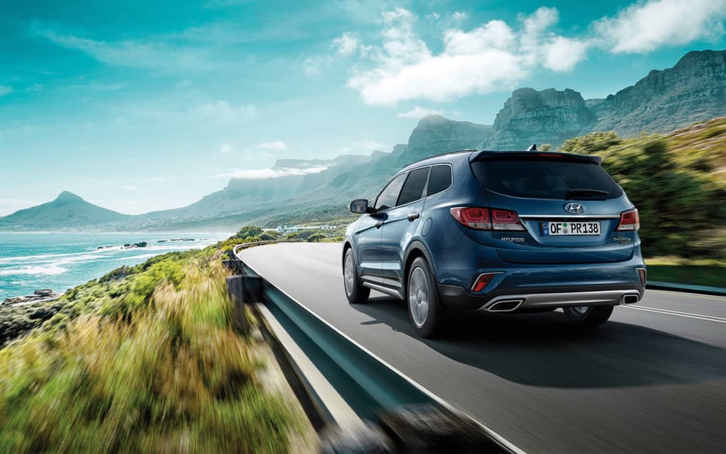 An Bord des Grand Santa Fe sorgen jetzt zusätzlich das radar-gestützte Auffahrwarnsystem, das vorausfahrende registriert vorausfahrende Fahrzeuge und sogar die Fahrbahn überquerende Fußgänger oder Radfahrer. Reagiert der Fahrer in solchen Situationen nicht auf vorausgegangene akustische und optische Warnsignale, leitet das System automatisch eine Notbremsung ein.