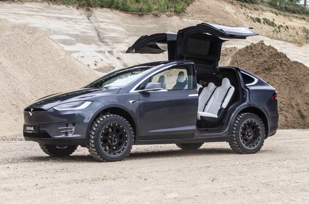 Mit dem richtigen Off Road Zubehör wird auch ein einem Strassen-SUV wie dem Tesla X ein Geländewagen fürs Grobe. Dabei ist er mit je einem Elektromotor an jeder Achse, bis zu 611 PS Systemleistung und einem Drehmoment von rund tausend Newtonmeter – praktisch aus dem Stand powermäßig schon Mal bestens vorbereitet.