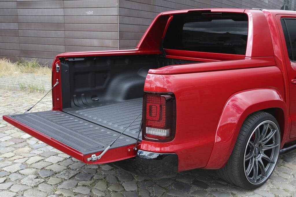 Das gilt auch für den Leckerbissen, der sich unter der Motorhaube verbirgt: Der von Audi entwickelte 3,0-Liter-V6-TDI-Motor wurde vom Tuner Werk2 auf stolze 350 PS (257 kW) gebracht. Das maximale Drehmoment liegt nunmehr bei 750 Newtonmetern, die Abgase verlassen den Red Amarok durch eine Auspuffanlage von Edel01.