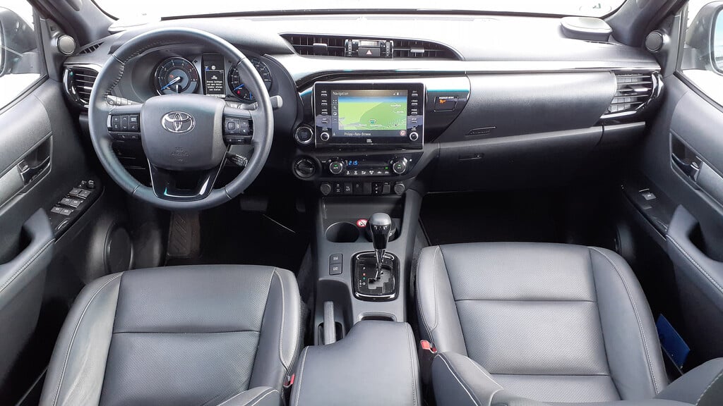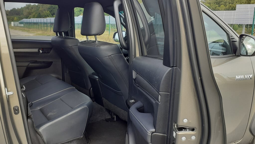 Der Hilux ist nämlich nicht nur 5,33 Meter lang, sondern die Polster der Sitze auch in fast einem Meter Höhe gelegen, so dass Personen minderer Körpergröße diese Hilfe gern in Anspruch nehmen. Vorn und hinten bietet die Kabine eine Breite von 1,43 Metern, ausreichend Bewegungsfreiheit ist also garantiert. Dies gilt auch für den Knieraum in der zweiten Reihe.