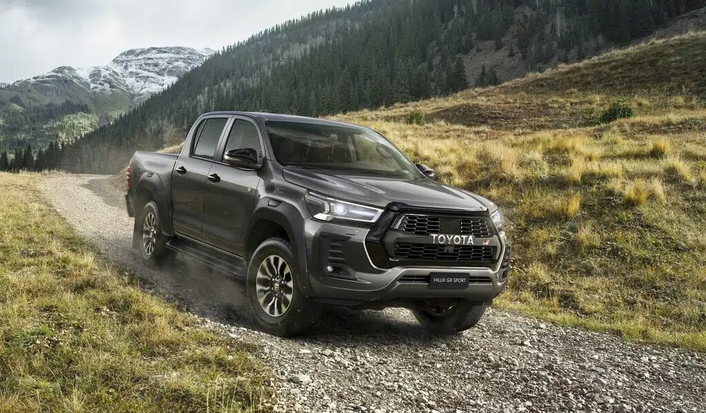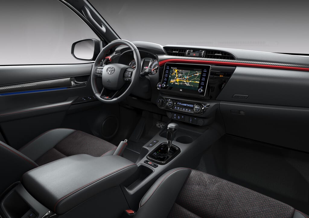 Der Hilux GR Sport bringt serienmäßig LED-Scheinwerfer und -Kombileuchten, Zwei-Zonen-Klimaanlage, Bergabfahrhilfe und ein automatisches Sperrdifferenzial mit.