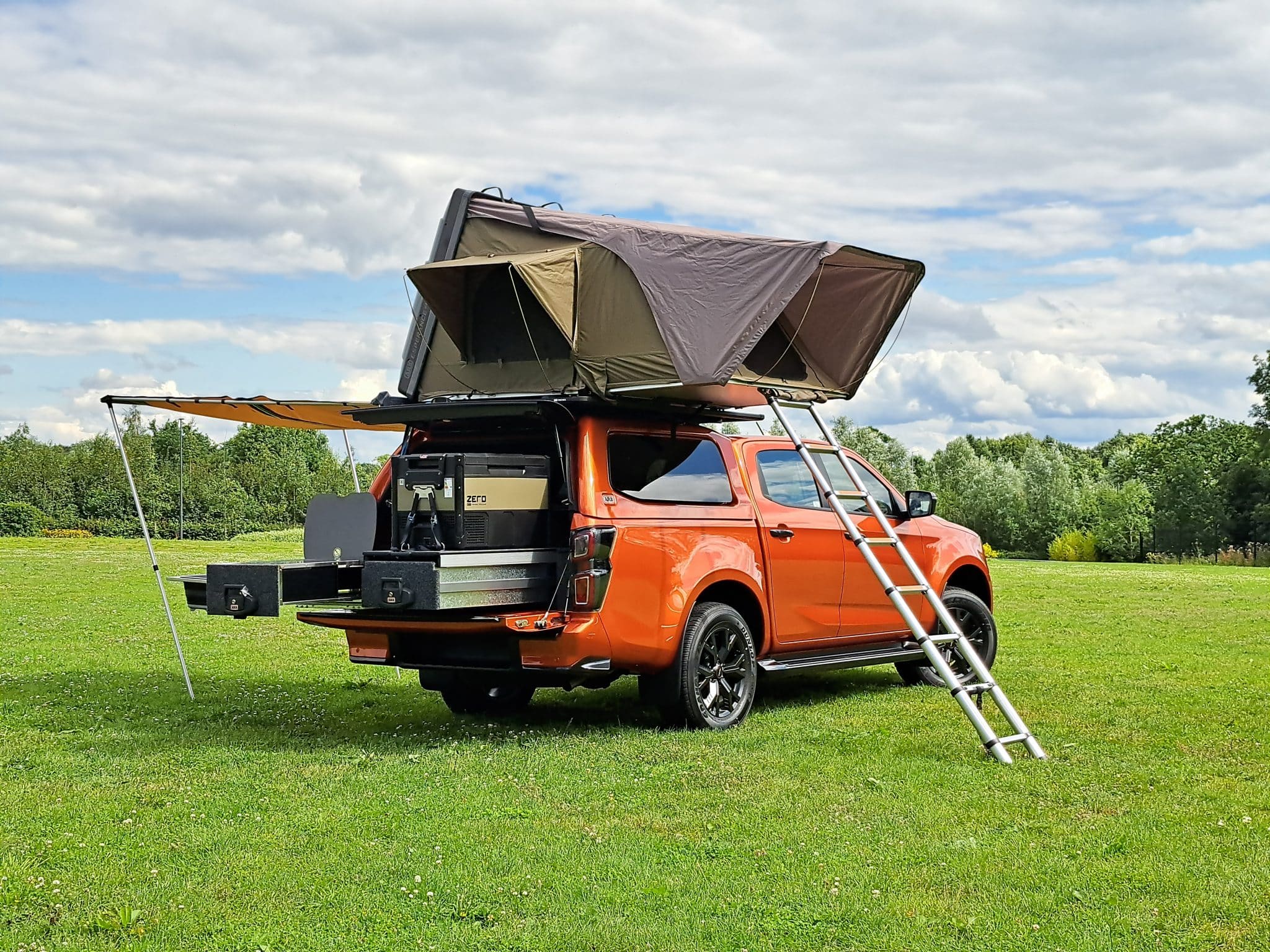 Dieser Isuzu D-Max V-Cross erhielt sozusagen das Vollprogramm des UK Ausrüsters für Campingzubehör ARB. Dazu gehören natürlich ein Dachzelt, eine komplette Kücheneinheit mit Kühlschrank und vieles mehr.
