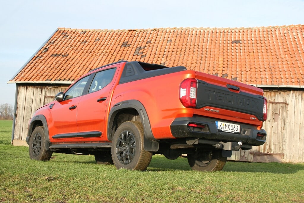 Wichtiger für einen Pick?up: Der T60 Max bietet 2H, Auto, 4H und 4L sowie 975 kg Nutzlast und 3,5 t Anhängelast. Die Ladefläche misst rund 1,50 m x 1,50 m – solide Werte für diese Klasse.